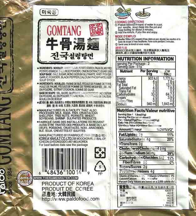 The post Re-Review: Meet The Manufacturer: Paldo Gomtang Oriental Style Noodles With Soup Base appeared first on The Ramen Rater.